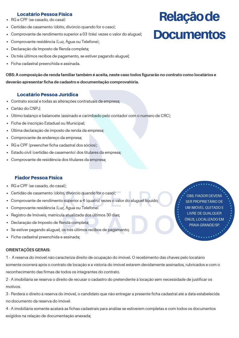 Será necessário apenas o nome e CPF ou CNPJ, para que realizemos sua análise cadastral. Com a análise confirmada, já podemos confeccionar seu contrato.